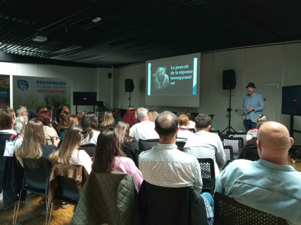 L’après-midi a été marqué par la 7ème édition du Séminaire HPA des Deux-Sèvres, organisée au Dôme. La conférence, animée par Thomas Yung, portait sur les enjeux de l’e-réputation, un sujet central pour les campings et acteurs du tourisme. Réservée aux établissements du département, cette rencontre a permis d’apporter un éclairage précieux et concret sur les bonnes pratiques à adopter.